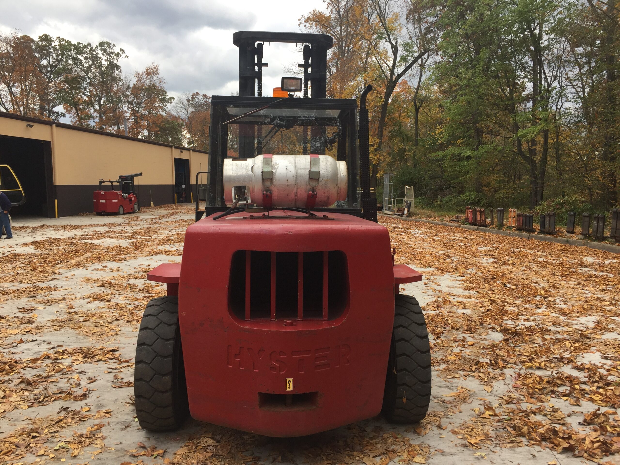 This Hyster forklift can handle any of your heavy lifting needs. This 15,500# capacity unit runs on Propane, has pneumatic tires that are dual drive, and has over 14′ of lifting capabilities. All of the safety features are on the truck as well.